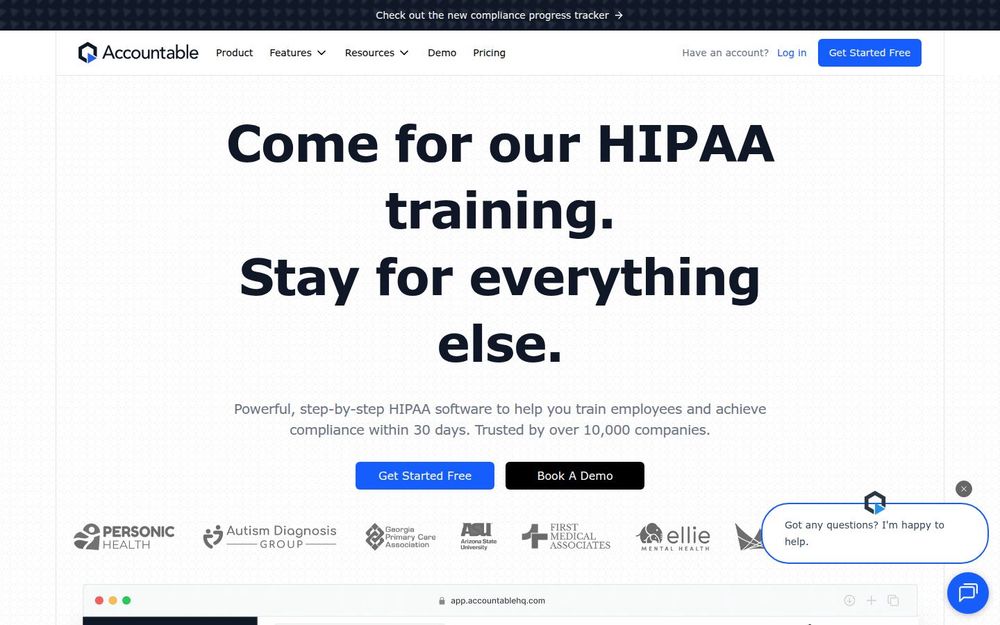 Accountable 是一款面向需要满足 HIPAA(健康保险可携带性与责任法案)合规性的组织而设计的一体化合规平台。平台通过软件工具与专家服务相结合,覆盖合规所需的培训、风险评估、政策与程序模板、供应商管理、事故上报等关键环节,并在完成要求后颁发由 Accountable 支持的 HIPAA 认证徽章,帮助企业向客户和监管方证明其数据隐私与安全承诺。
