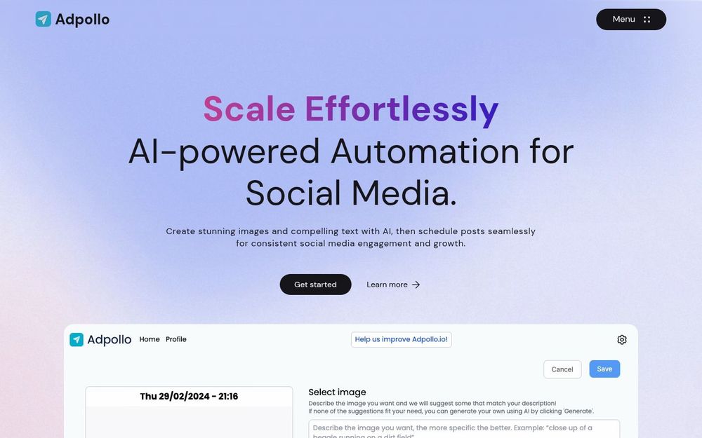 Adpollo 是一款面向社交媒体内容制作与发布的AI 自动化平台,旨在帮助个人、品牌和企业以更低的人力成本实现持续、专业的线上存在。通过将文案生成、图像创作、定时发布与数据分析整合到同一套工作流中,Adpollo 让社媒运营从创意到投放都变得更加高效可控。
