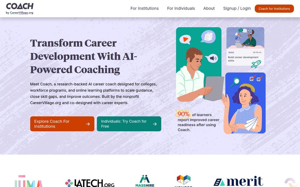 Coach 是一款面向教育机构与求职者的AI 职业教练,由 CareerVillage.org 与职业发展专家共同设计,旨在通过自动化与个性化的职业辅导,提升学习者的就业准备度并扩大机构的辅导能力覆盖。平台结合大语言模型、经过研究验证的职业活动与庞大的职业信息数据库,提供全天候的指导与可测量的影响评估。
