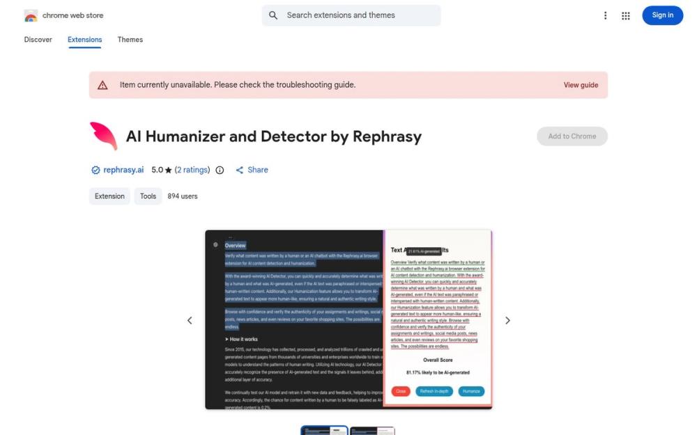Rephrasy 提供的“AI Humanizer and Detector”是一款面向浏览器的 Chrome 扩展,目标是帮助用户快速判断文本是人工撰写还是由 AI 生成,并在需要时将 AI 文本“人性化”以呈现更自然的写作风格。该扩展由 rephrasy.ai 发布,界面与使用流程针对网页内选中文本进行了简化,适合编辑、内容审核和创作者等需要辨别或改写文本的场景。