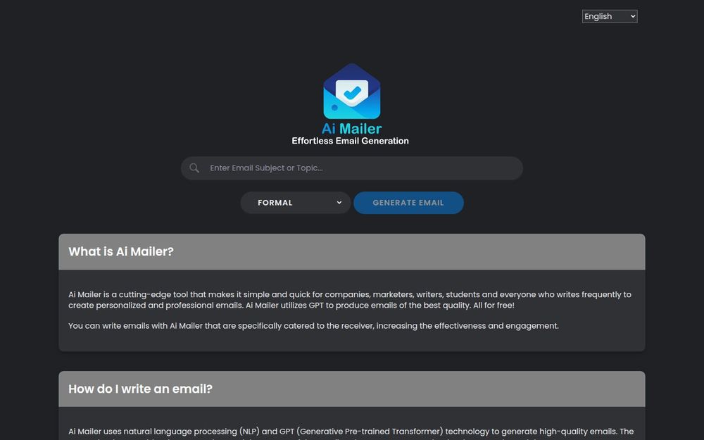 Ai Mailer 是一款定位明确、上手快速的免费 AI 邮件生成工具,适合追求效率与一致性的人群。其 GPT 驱动的智能撰写、个性化选项 与 便捷的复制功能,使其成为日常邮件写作的实用助力。对于想要提高沟通效率、减少重复写作工作的用户,值得一试。