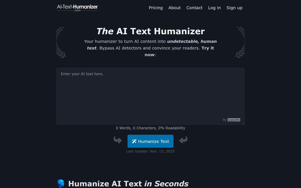 AI Text Humanizer 是一个专注于将 AI 生成文本转化为“人类化”语言的在线工具。它承诺通过调整用词、打断重复模式、简化句子结构等手段,让机器写作变得更自然、更易读,同时降低被 Turnitin、QuillBot、GPTZero 等检测器识别为机器生成内容的概率。网站提供即时在线操作,支持移动端与桌面端,用户可以在不注册的情况下免费尝试基本功能,也能通过注册或订阅 PRO 服务获取更高的每日额度和 API 调用权限。