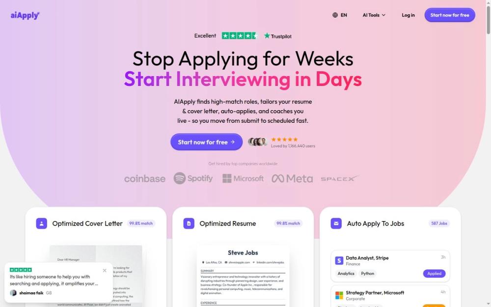 AiApply 是一款以 AI 为核心的求职协同平台,覆盖从简历与求职信撰写、职位发现与匹配,到自动投递与面试辅导的完整流程。平台通过训练有素的模型(包含 GPT-4 与 Azure AI)来理解职位描述与用户背景,从而生成与目标岗位高度匹配的申请材料,帮助用户把繁琐的文本工作自动化并提升被筛选和邀约的概率。
