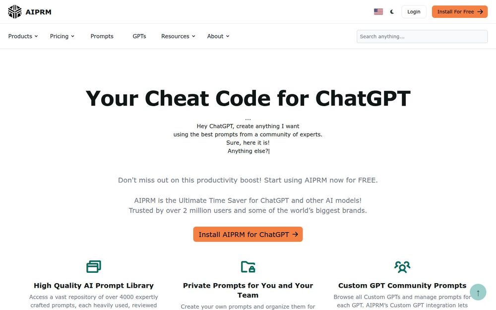 浏览器扩展与一键调用: 通过 AIPRM 的扩展直接在 ChatGPT 等界面内调用提示,减少来回切换,提高工作流效率并节省时间。