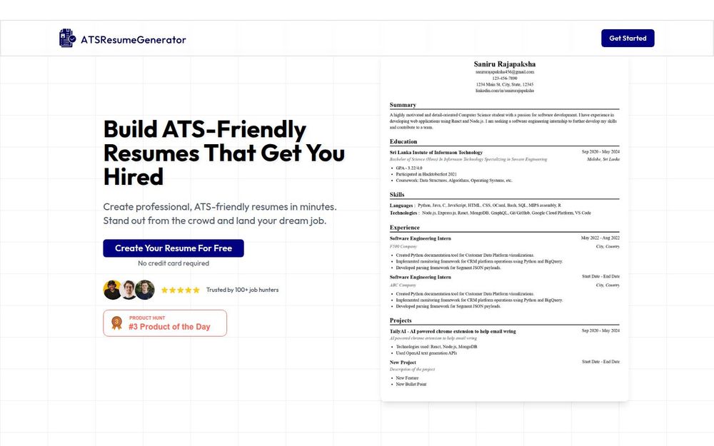 总体而言,ATSResumeGenerator 适合希望快速生成职业化、ATS 兼容简历的用户,尤其是对初筛通过率有明确需求的求职者。