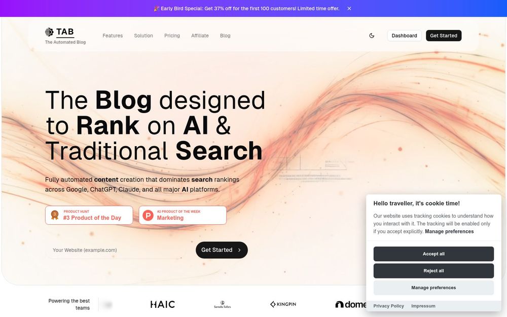 TAB 是一个全自动化的博客创建平台,旨在帮助用户在传统搜索引擎和 AI 搜索平台上获得更高的可见性。通过结合传统 SEO 和 AI 优化,TAB 能够为用户提供双重优化的内容,确保在 Google、ChatGPT 和其他 AI 平台上都能获得良好的排名。