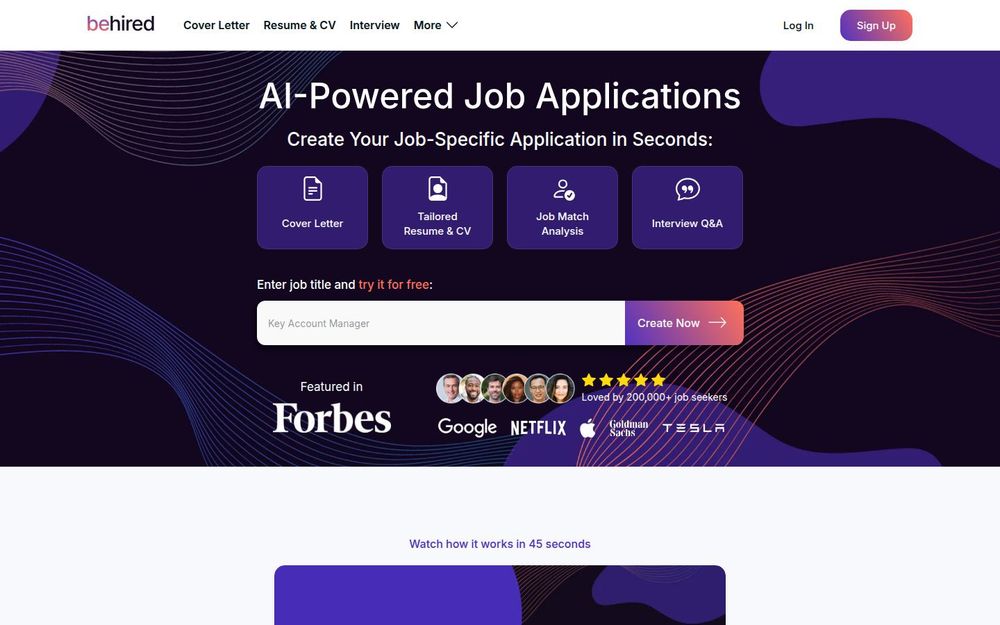 Behired 是一家以 AI 驱动求职应用 为核心的在线平台,提供从简历、求职信到职位匹配的一站式工具。网站展示了大量企业合作与用户使用数据,强调速度与可定制性,适合希望提升求职效率和申请质量的个人用户与企业客户。