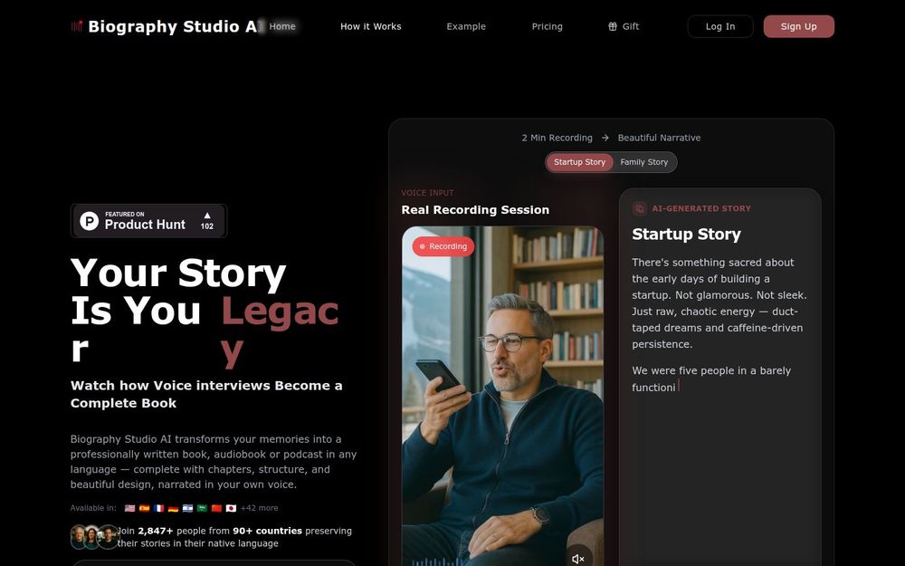 Biography Studio AI 适合希望将个人经历、家庭史或创业故事长期保存并专业化呈现的用户。它将复杂的写作与制作流程自动化,既保留个人独特声音,又输出专业级的成品,适合家族传承、创业者自述、艺术家回忆录等多种场景。对于想要在短时间内把口述记忆转为流畅、可出版文本与音频的人来说,是一款高效且实用的工具。