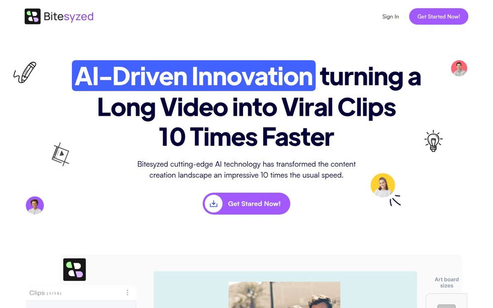 Bitesyzed 是一款面向内容创作者与营销团队的 AI 驱动视频重利用平台,旨在将冗长的长视频自动拆分并生成适合社交平台传播的短视频片段。平台通过人工智能分析、视频转录与自动剪辑流程,显著缩短从素材到成品的时间,让用户以更少的人力和时间产出更多有传播力的短片内容。