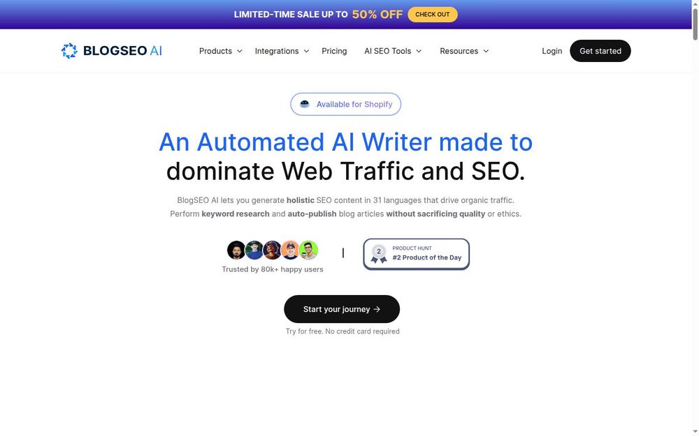 - 多平台集成: BlogSEO AI 可以与多种内容管理系统(如 Shopify、WordPress 等)无缝集成,方便用户在不同平台上发布内容。