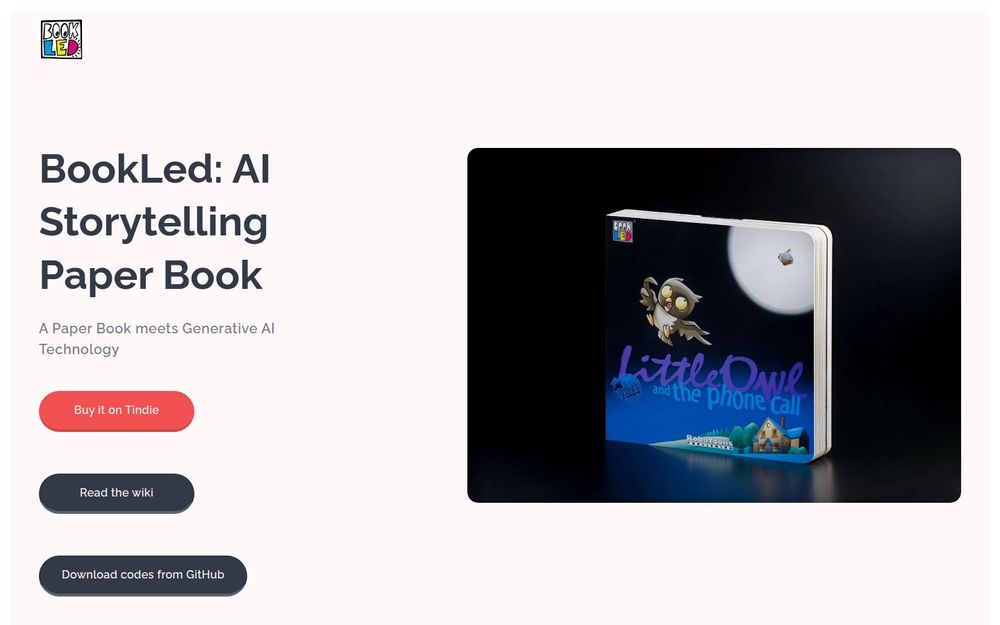 BookLed 是一款把纸质阅读体验与生成式 AI 技术结合的实验性硬件书籍。外观为厚卡纸和精装封面,内置电子模块,可通过磁性页面识别传感器检测翻页并识别当前页码,然后配合光效和音效,或将页面信息传递给生成式 AI,以多种方式朗读或扩展故事内容。该产品既适合喜欢动手的创客,也面向家长、教师和图书馆用于课堂或亲子互动。