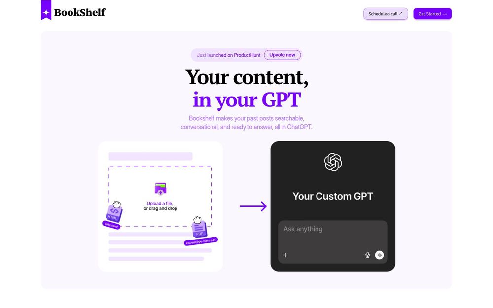 BookShelf 支持快速上手(Landing Page 可直接跳转到应用),提供日程安排(Schedule a call)以获得演示或帮助,并在 Product Hunt 等社区进行宣传推广。总体而言,它适合希望以最小额外工作将历史内容转化为长期价值与收入的内容创作者。