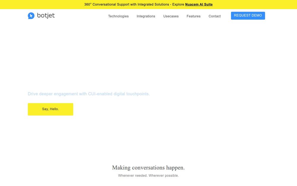 Botjet 是一款面向企业的会话式人工智能平台,旨在将自然语言对话能力嵌入多种数字触点(Web、移动、IoT 等),帮助企业实现客户支持自动化、智能助手与业务流程优化。平台强调易用性与可扩展性,提供演示示例、行业用例和合作伙伴计划,以便企业快速从 PoC 过渡到生产级部署。
