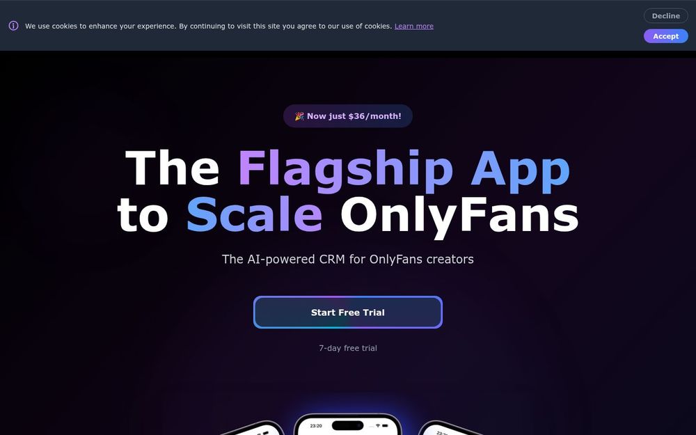Botly 是一款专为 OnlyFans 创作者打造的 移动优先 AI 驱动 CRM。它将粉丝管理、消息撰写、行为追踪与数据分析整合到一个可在手机浏览器中完整运行的工具中,让创作者无需依赖桌面即可随时随地经营业务。Botly 提供试用期、按月/按年订阅和内置 AI 消息生成功能,目标是提升沟通效率并增加收益。