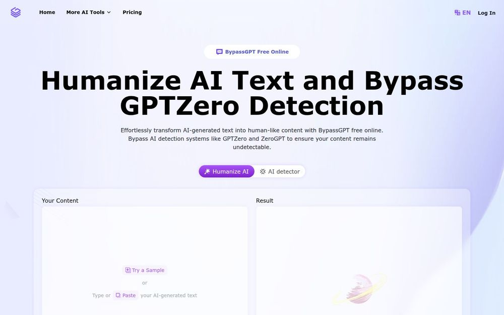 BypassGPT 是一款面向普通用户与内容创作者的在线 AI 人类化 工具,目标是将 AI 生成的文本转换为更自然、富有人类风格的内容,从而降低被像 GPTZero、ZeroGPT 这类 AI 检测器识别的可能性。该平台主打免费在线使用、操作简单、跨设备访问以及对多语言的支持,适用于需要快速生成或优化文本的各种场景。