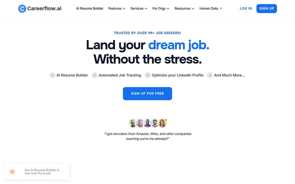 Careerflow 是一款以 AI 为核心 的求职辅助平台,目标是让用户在求职过程中更高效、更有方向感。平台整合了从简历撰写、职位匹配、申请自动填充、LinkedIn 优化到面试准备的工具,强调“一站式”管理求职流程,适用于个人求职者、职业教练、院校与培训机构等多种场景。Careerflow 提供免费基础功能并配备多种付费方案以解锁无限分析与高级支持。
