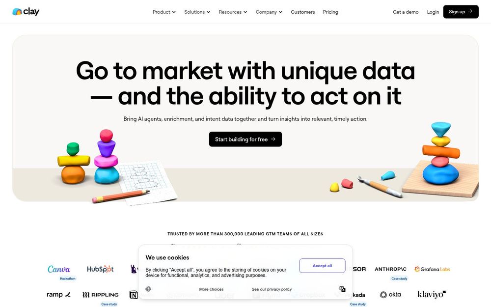 Clay 将数据获取、处理与执行闭环化,适合希望以数据驱动扩展 GTM 能力的团队。通过集成多家数据提供商和强大的 AI 能力,Clay 能显著减少人工研究成本、提升线索质量并加速从想法到自动化的落地。无论是用于 CRM 丰富、意图驱动的外呼、ABM 策略还是 TAM 规划,Clay 都能作为集中化的数据与执行平台,帮助团队快速试验、迭代并规模化成功方案。