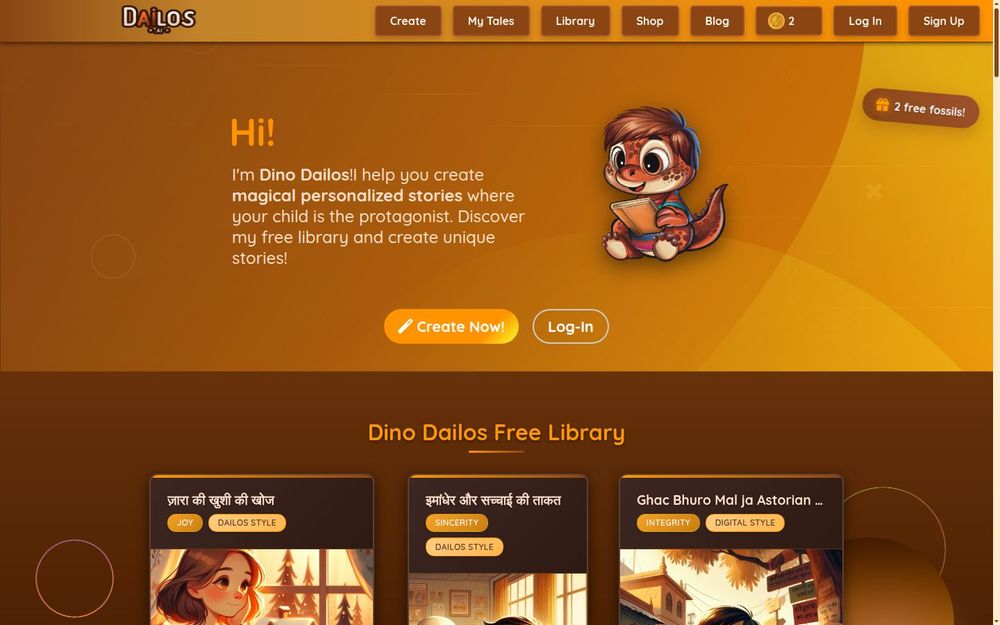 Dailos(又称 Dino Dailos)是一个专注于为儿童创建个性化故事的线上平台。通过直观的界面和 AI 生成功能,家长、教师或内容创作者可以将孩子设为故事主角,选择价值观、语言和叙事风格,快速生成适合不同年龄段的短篇或长篇故事。网站同时提供免费故事库、下载与收听功能,并配套教育适用的素材与用户反馈。