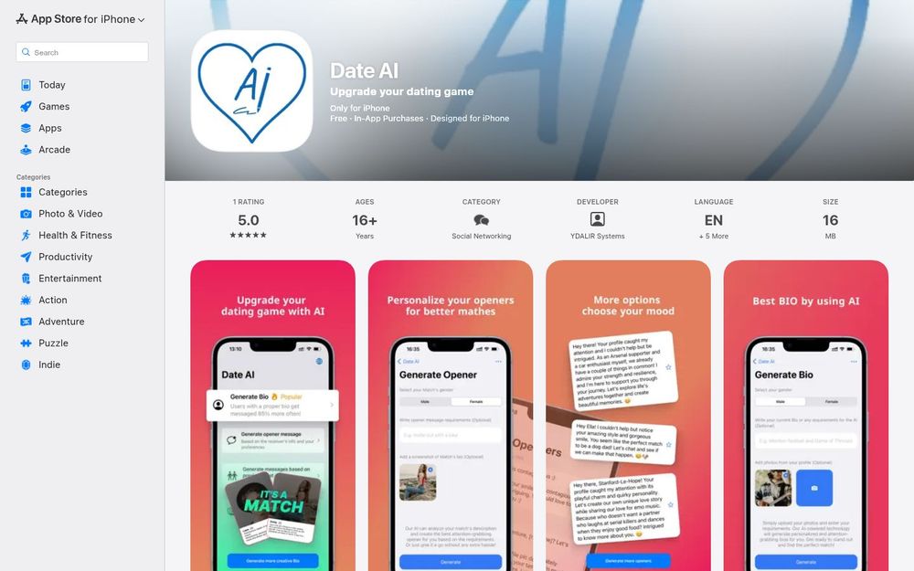 Date AI 是一款专为提升线上约会成功率而设计的 iPhone 应用,利用 人工智能 技术为用户生成吸引人的个人简介、评价并优化个人照片,以及为初次联系生成个性化的开场消息。该应用目标是降低撰写介绍与首条消息的压力,提高匹配与回复的概率,适合新手或有经验的线上交友用户使用。