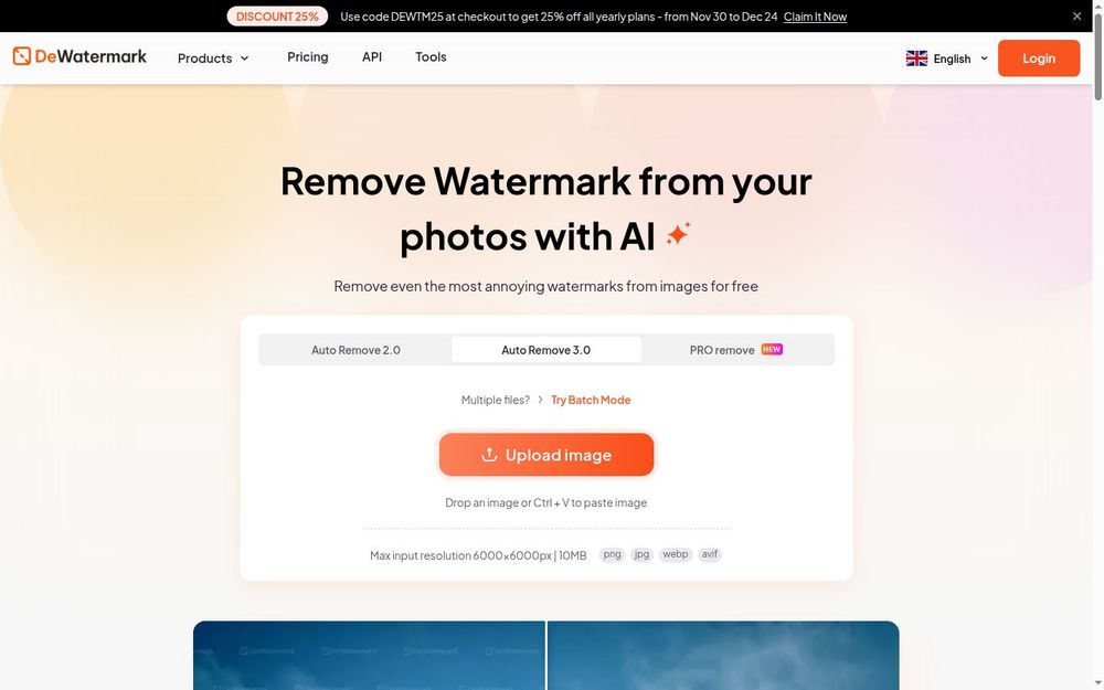 DeWatermark 是一款专为去除图片和视频水印而设计的在线工具,利用先进的人工智能技术,用户可以轻松去除水印,恢复图片的原始美感。