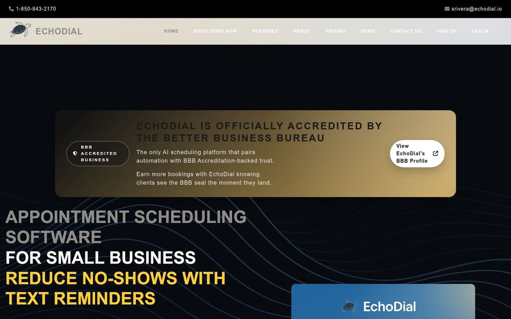 EchoDial 是为中小型服务型企业设计的全栈预约与客户沟通平台,提供 在线预约、多渠道自动提醒 与 表单签名 等功能,致力于通过自动化降低爽约率并节省人工成本。平台支持 SMS/MMS、语音电话与邮件提醒,兼顾医疗行业的 HIPAA 合规 要求,同时内置 AI 工具帮助生成营销内容与客户通知。