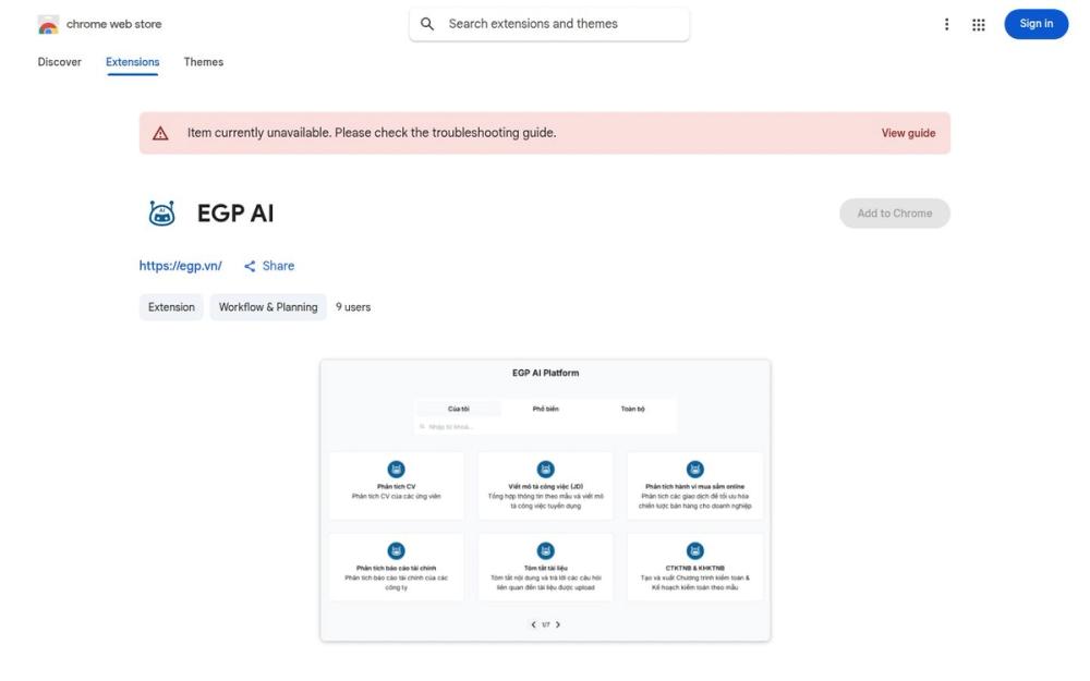 EGP AI 的开发者公开了隐私政策,声明不会收集用户数据、不会将数据出售给第三方,也不会将数据用于与扩展核心功能无关的目的。对于欧盟消费者,开发者未标注为“trader”,因此某些消费者权利可能不适用。建议在企业级部署前,依据内部合规与数据保护要求进一步评估。