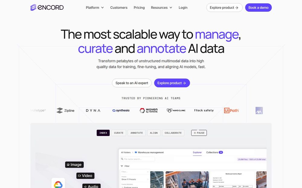 Encord 适合需要处理海量多模态数据并将其快速投入生产的团队。通过索引+预标注+评估的闭环设计,它能同时提升标注效率与模型性能,减少数据冗余并加速模型迭代。平台的企业集成与安全能力,使其在医疗、机器人、自动驾驶与企业级视觉应用等高要求场景中具有良好适配性。综合来看,Encord 对追求可扩展性、可审计性与高质量训练数据的组织,是一个能够显著缩短研发到部署周期的实用工具。
