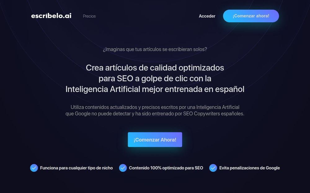 Escríbelo 是一款以生成 SEO 优化内容为核心的人工智能写作平台,尤其面向西班牙语市场,同时支持多种语言写作。它声称能够在短时间内产出高质量、原创且适合上位的文章,适合博主、SEO 专家、文案和营销团队使用。平台提供演示视频、用户评价和多个使用场景的模板,旨在通过自动化写作显著提高效率并降低外包成本。
