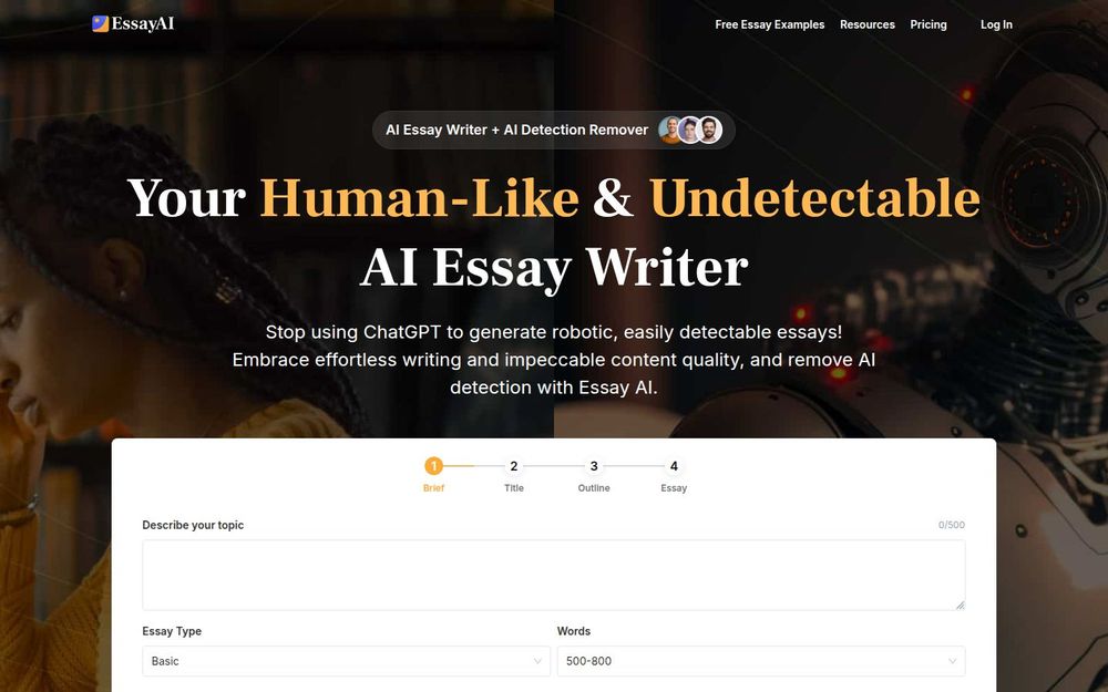 EssayAI 是一款以生成“人类化、不可被常规 AI 检测器识别”的学术类写作为核心的在线工具。平台自称其背后的大型语言模型经过海量高质量人类论文与写作样本的训练,能够在短时间内完成从题目、提纲到完整论文的自动化写作流程,并提供内置检测以验证生成文本的“人类得分”和抄袭/AI 检测结果。该产品主要面向学生、研究人员、自由撰稿人等需要高质量、结构化学术文本的用户群体。