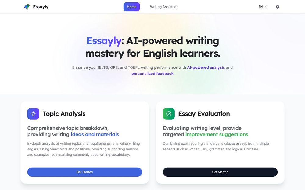 如果你需要系统化、可量化且高频次的写作训练,Essayly 能在短时间内帮助你识别弱点、完善写作结构并提升考试分数。其结合题目分析、智能评分与个性化提升建议的组合,使得每次练习都更有针对性和效率,非常适合以成绩导向的英语写作备考者使用。