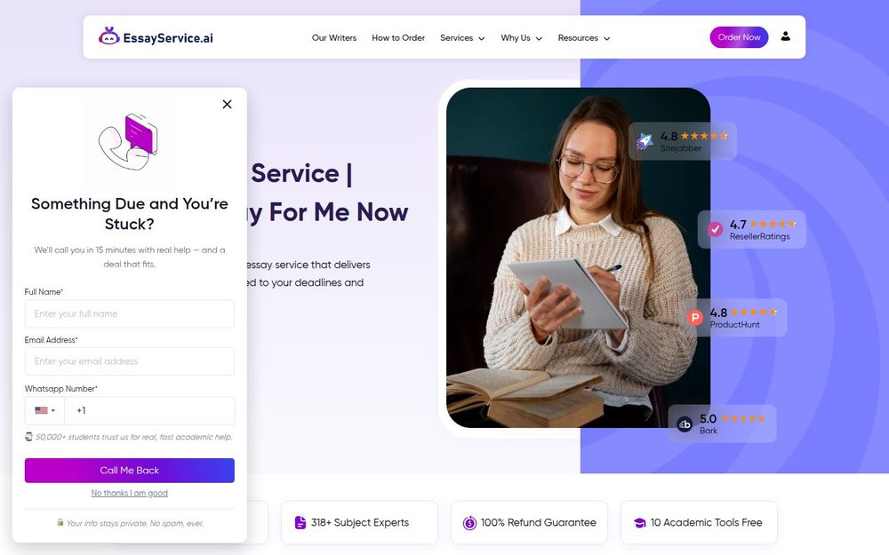 EssayService.ai 适合需要在短时间内获得高质量、格式规范且可追溯稿件的学生和研究人员。其优势在于 专业写手团队、多样化加急选项、以及 完整的质量与隐私保障体系,同时配套多种免费学术工具,方便用户在提交前自行校验与优化文本。对于想节省时间、提高作业质量或需要示范性范文作为学习参考的用户,该平台提供了较为全面且便捷的一站式解决方案。