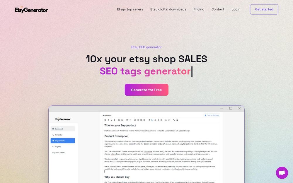 如果你希望用更少时间发布更多商品、提高 Etsy 搜索曝光并获得稳定的流量增长,etsygenerator 是一个值得尝试的工具。它不仅适合希望提升效率的个人卖家,也适合需要规模化运营的店铺团队。通过自动化的 SEO 优化与多样化的写作模板,etsyGenerator 能帮助你把更多精力放在产品设计与客户服务上,而将文案与关键词工作交给 AI 完成。