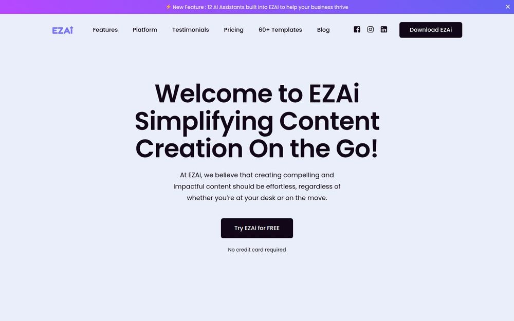 EZAi 适合希望提升内容产能、保持品牌语言一致性并节省时间的用户与团队。其丰富的模板库、专属 AI 助手以及多种付费选项,使得从单干的自由职业者到需要多人协作的营销团队,都能根据预算与使用频率灵活选择。移动端支持与快速生成能力进一步保证了“随时创作、即时发布”的工作流,结合预测评分和可定制化编辑,用户可以在保证速度的同时不断优化内容质量。