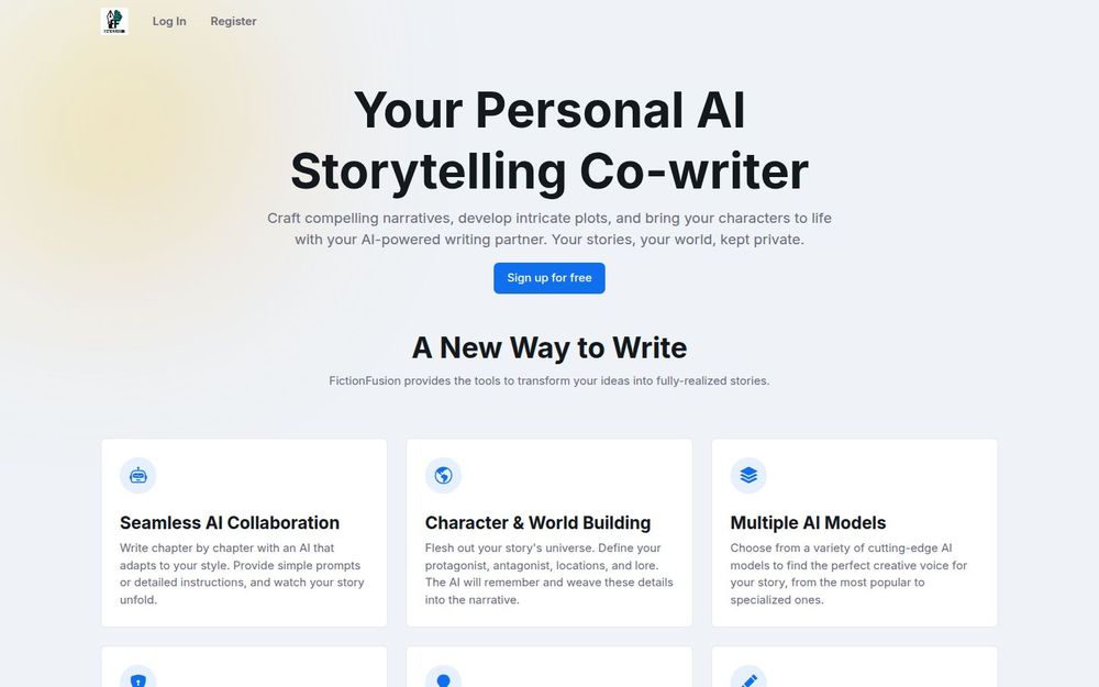 FictionFusion 是一款以作者为中心的 AI 协作写作平台,旨在将人类创造力与人工智能的辅助能力结合,帮助创作者更高效地构建故事、塑造角色并推进情节发展。平台侧重于章节式创作流程,让作者可以在保持创作控制权的同时,借助 AI 加速构思与落笔过程。无论是想要从零开始构建世界,还是在既有设定中继续推进故事,FictionFusion 都提供了实用且灵活的工具支持。