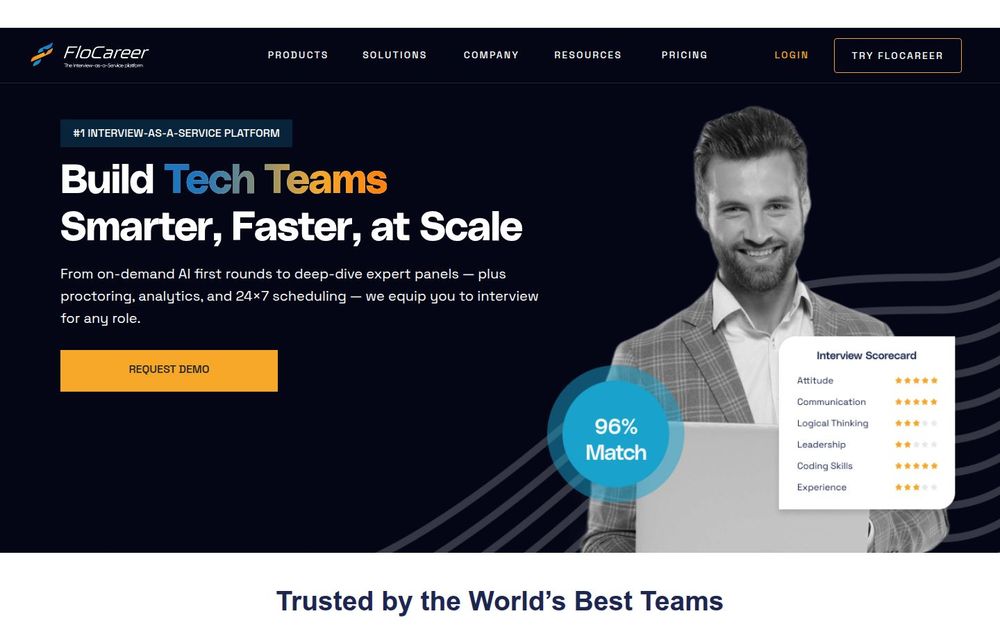 FloCareer 是一家专注于将面试流程外包化与平台化的服务商,提供“面试即服务(Interview-as-a-Service)”解决方案。平台整合 AI 面试官 与经过筛选的 人类专家(FloExperts),支持全天候(24x7x365)面试执行,并覆盖技术与非技术岗位。其目标是通过标准化、自动化和数据驱动的流程,帮助企业降低面试成本、提高面试效率并防范舞弊行为。