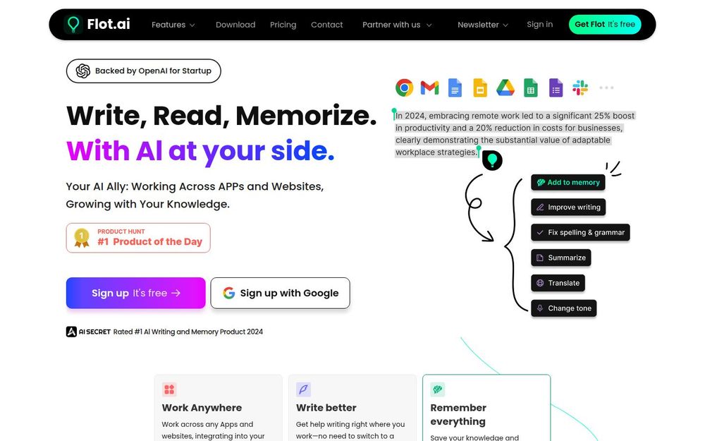 如果你希望在日常工作中减少来回切换工具的碎片化时间、提升写作质量并建立一个可检索的个人知识库,Flot AI 提供了一套比较完整的解决方案。它不仅注重即时写作帮助,还强调长期记忆的积累与检索能力,适合需要保存大量上下文信息、频繁撰写回复或希望在多个平台保持一致写作水平的个人与团队。此外,Flot 声称在成本与功能上对标或优于同类产品,并提供免费试用,便于先体验后决定是否长期订阅。