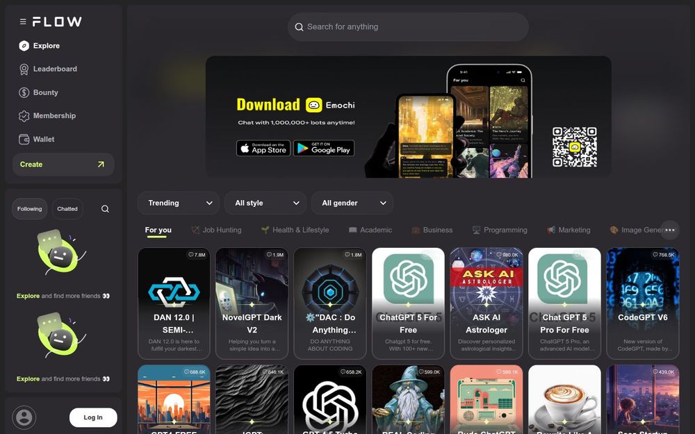 FlowGPT 的优势在于 丰富的社区内容库、便捷的筛选与推荐、以及对创作者友好的发布与变现路径,这使得平台既适合普通用户快速取用,也能吸引想要构建长期受众的提示作者。