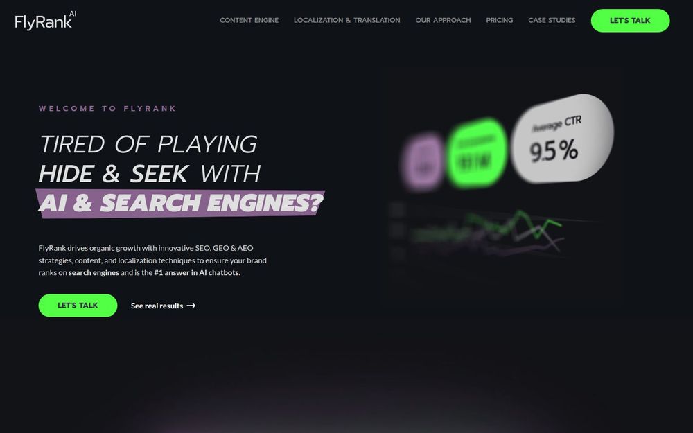 FlyRank 是一个结合 AI 技术、数据驱动与传统 SEO 策略 的增长平台,目标是通过自动化内容创作、答案引擎优化(AEO)与地域化(GEO)本地化,从而显著提升品牌在搜索引擎和 AI 聊天机器人中的可见性。平台强调可规模化发布、快速索引与持续优化,并以保证效果(3 个月内至少 3x 覆盖率或退款)为承诺,服务对象覆盖希望扩展本地或全球流量的企业。