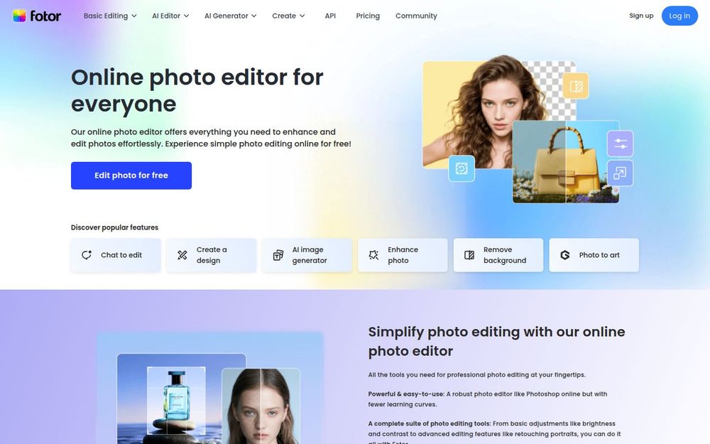 Fotor 是一款面向大众的在线图片编辑与设计工具,融合了传统图像编辑功能与多种生成式 AI能力。平台提供网页版、iOS、Android、Windows 和 Mac 客户端,适合从初学者到专业内容创作者的一站式图像处理需求。Fotor 强调操作简便与功能丰富,用户无需复杂的学习曲线即可实现高质量的图片增强与创作。