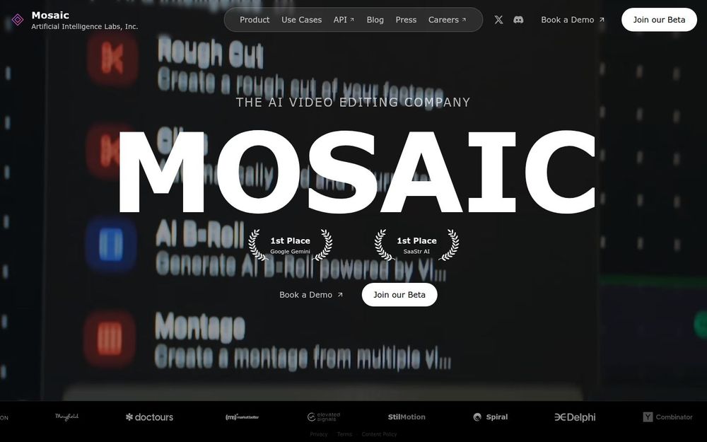 Mosaic 是一家以人工智能为核心的视频编辑公司,定位为 Agentic AI Video Editing Platform。它通过智能代理式工作流和开放的 API,帮助个人创作者与企业用户从长视频中快速生成高质量的短视频、亮点剪辑与带字幕的成片。Mosaic 提供产品页面、使用案例、技术文档,并支持预约演示与加入内测,且获得 Y Combinator 等机构的支持和多家客户的验证。