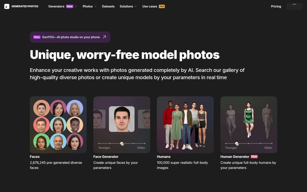 通过以上能力与流程,Generated Photos 为创意团队、数据科学家与企业提供了一个灵活且高效的视觉内容生产工具。