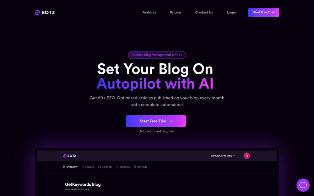 - 完整自动化流程: 从填写业务信息、选择受众,到连接博客,GetBotz 负责后续的全部写作与发布工作。