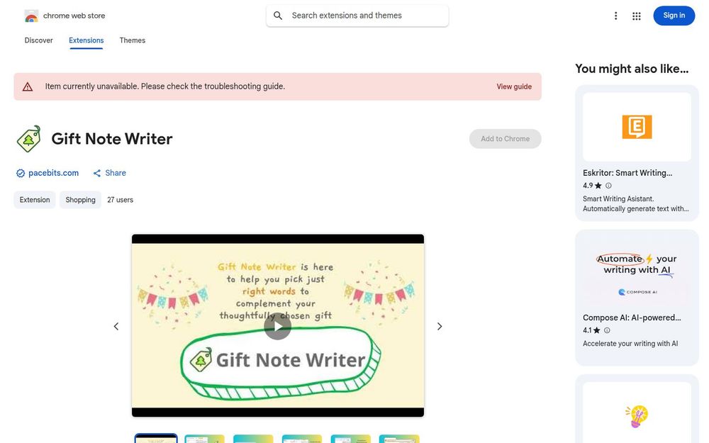 Gift Note Writer(礼品留言写手)是一款面向日常礼物场景的 AI 助手扩展,通过智能生成个性化留言与祝福语,帮助用户在短时间内产出贴切的文字内容。该扩展安装轻便、界面简洁,适合电商买家、礼物准备者以及需要快速撰写贺卡或便签的用户。