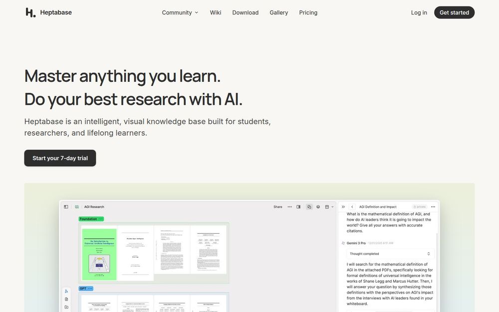 总结:Heptabase 是一款面向视觉学习与深度研究的现代知识管理平台,通过白板式的自由布局与 AI 驱动的资料理解,帮助用户把零散信息转化为长期可用的知识资产。