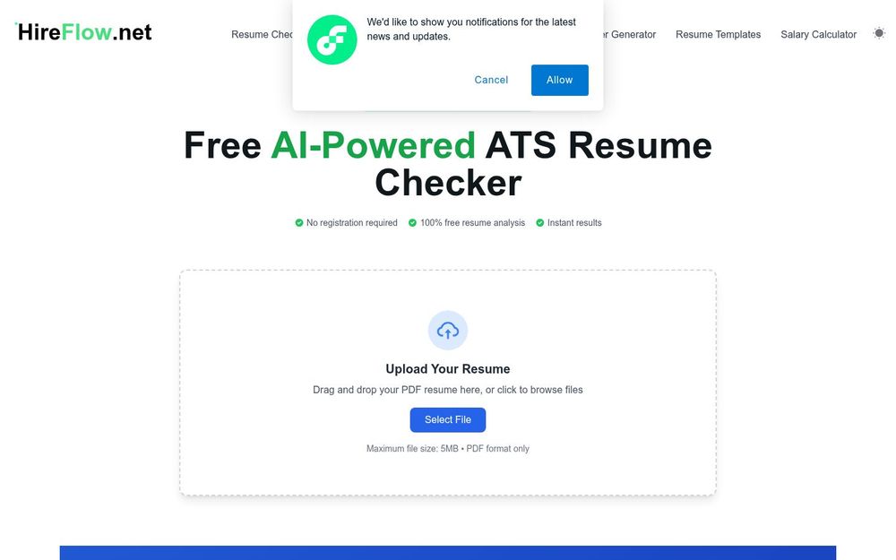 HireFlow 是一款面向求职者的在线简历优化与检测工具,核心通过 人工智能驱动的简历检查器 帮助用户通过 ATS 筛选并吸引真实招聘人员的关注。平台提供免费的即时分析服务,同时结合付费模板与专业写作服务,目标是提升简历在自动化系统和人工筛选中的命中率与表现。