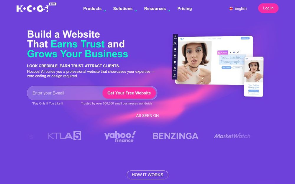 - AI 驱动的设计: Hocoos 利用先进的人工智能技术,为用户提供个性化的网站设计,确保每个网站都能反映出品牌的专业形象。