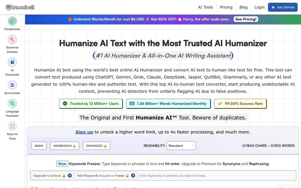 Humanize AI 综合了多项文本改写与优化功能,适合需要将自动生成内容快速转为高质量、人性化文本的各类用户场景。