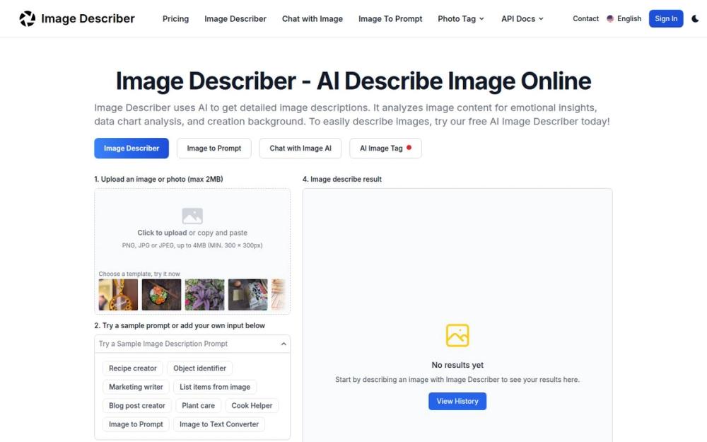 Image Describer 适合需要快速将视觉信息转为文本的用户和团队。它集合了自动描述、图表解析、prompt 生成、图像问答与标签化等多项功能,操作门槛低且模板丰富,能显著提升内容创建、数据理解与视觉无障碍工作的效率。对于想在短时间内获取高质量图像文字输出的个人或小型团队,是一款值得尝试的实用工具。