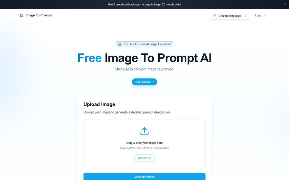 - 访问网站并上传符合要求的图片(PNG/JPG/JPEG/GIF,最大 6MB)。