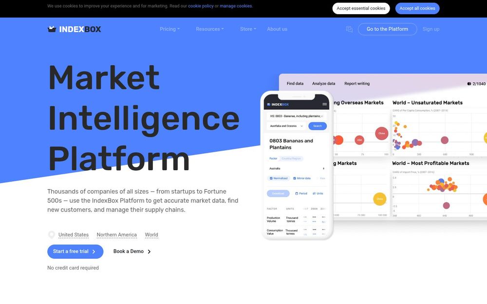 IndexBox 提供多档订阅(Starter、Smart、Business、Enterprise),按月或按年计费并提供不同下载额度、用户数与 API 调用限制。平台支持免费试用与演示预约,使决策者在购买前评估数据覆盖与分析能力。